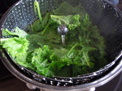 Wash the kale and spinach leaves. Rough shop the kale to manageable size pieces. Steam the kale and spinach in either a steaming basket on the stove or in the Beaba babycook (or similar device). If using the babycook fill water to the 2 mark for a full basket. If steaming on the stove use about 2-3 inches of water and steam for about 5-10 minutes. Add the Nutmeg to the kale and spinach as they are steaming (or before if using the babycook). Set the kale and spinach in the refrigerator once they are done steaming to avoid over-cooking and to cool them down a touch before pureeing (about 5-10 minutes). Discard the cooking liquid. Puree the kale, spinach and banana until smooth. Additional water may be needed to reach your bebe’s desired consistency. This recipe will keep up to 3 days in the fridge or 3 months in the freezer. This recipe will fill about 3 ice cube trays (15-30 servings), or 4-6 small jars.